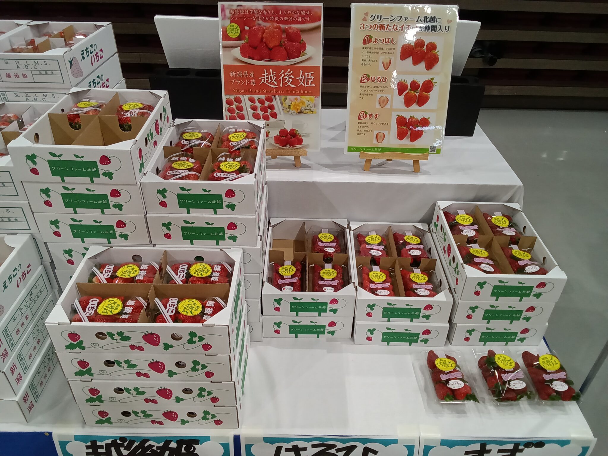 第36回北越農事総合見本市参加 2026.02.02 お知らせ1月30日に燕三条地場産業振興センターで開催された「第36回北越農事総合見本市」に参加しました。今年も青果物即売コーナーにてグリーンファーム北越で栽培した「越後姫」「よつぼし」「はるひ」「すず」の4品種を販売しました。お立ち寄りいただいた皆様、誠にありがとうございます。No related posts.